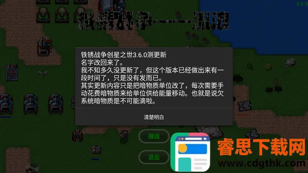 《铁锈战争创星之世MOD模组》是一款超有趣的策略对战手游。它画面是逼真细腻的像素风格,融合了海陆空作战,考验你的作战指挥能力。游戏里有丰富兵种任你创建,像指挥中心、建造者、资源抽取器等各种单位各司其职。玩法类似小型红警,有多种地图。其特色是经典像素风,操作性和策略丰富,兵种可自由搭配,还有丰富关卡等你挑战。能解决你对策略战争游戏的需求,带来超多乐趣。比如你想体验不同作战单位的配合,它有海陆空各种单位供你挑选。而且有单人模式和联机模式,没网能玩单机,有网可享联机PVP乐趣。还能通过模组设置弹尽粮绝模式等,可玩性超强。快来下载,在这个自由世界里指挥作战,感受策略对战的魅力吧!