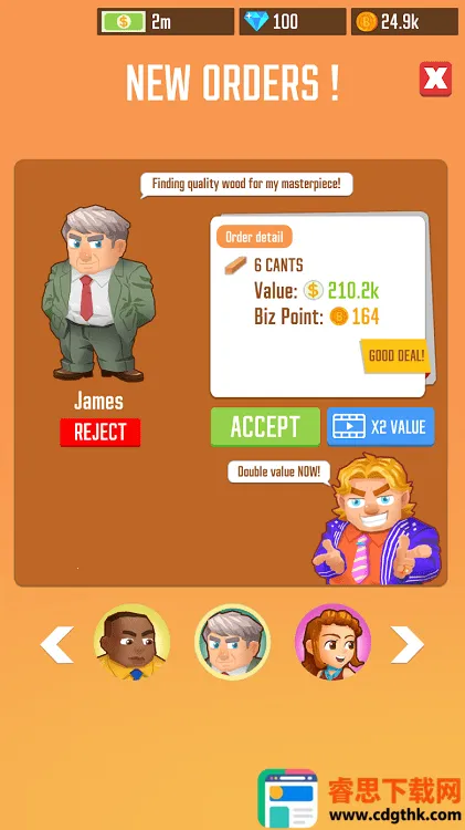 嘿,想体验经营木材公司的乐趣吗?这款模拟经营手游就能满足你!在游戏里,你将接手叔叔的木材公司,目标是把它发展壮大。你可以招募工人、升级设备,提高生产效率。这里有绿色循环产业链,伐木同时要记得雇佣植树工,维持资源可持续。采用挂机放置模式,工人自动工作,离线也能持续产出木材与金币,上线收取收益就行,超适合碎片化时间玩。游戏画风卡通清新,操作简单没压力。你还能应对动态市场订单,随机订单考验生产调度,市场波动影响木材价格,低买高卖增加策略维度。从一个小锯木厂起步,一步步建立木材帝国,享受经营的成就感,快来试试吧!