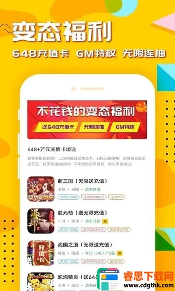 2. 福利众多:每日登录签到可领取海量手游福利礼包,有免费首充白嫖券、无门槛大额代金券,支持5倍自动返利,0.1折充值折扣,还能无限制领取丰富的游戏福利。