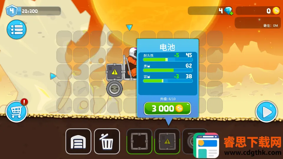 1、深度车辆自定义,数十种零件自由搭配,可升级性能参数、调整结构布局。