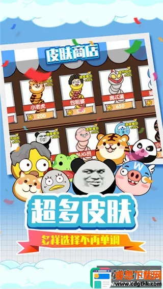 1. 游戏拥有丰富多样的趣味皮肤,玩家能解锁不同外观,打造个性化角色。比如爱鲲、熊猫馆长、嘎子等魔性皮肤,还有篮球之神坤坤皮肤等,融梗设定超魔性,全部皮肤都能通过玩游戏赚取金币快速解锁。