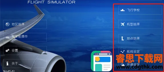 在驾驶飞机之前,我们可提前设定飞行技巧、飞机型号、飞行地点、航线设定以及环境等各项游戏参数