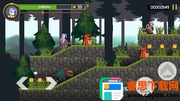在这游戏里,你能操控各种Q版英雄。玩法简单,点击开始选英雄,左手控制前进后退,右手控制跳跃及攻击。攻击小兵可充能解锁技能。在墙面上连击跳跃能攀爬。这里有超多怪物和关卡,要消灭所有敌人,击败BOSS才能闯关。