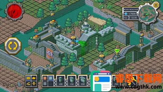 2. 多样建造玩法:可在游戏中拖动围墙放置在指定地方,还能旋转、售卖放错的建筑。修筑围墙后抵御发条人进攻,建造炮台,战斗胜利后搜刮源能用于建造或修理构筑物,靠近围墙点击修复按钮可修复围墙。