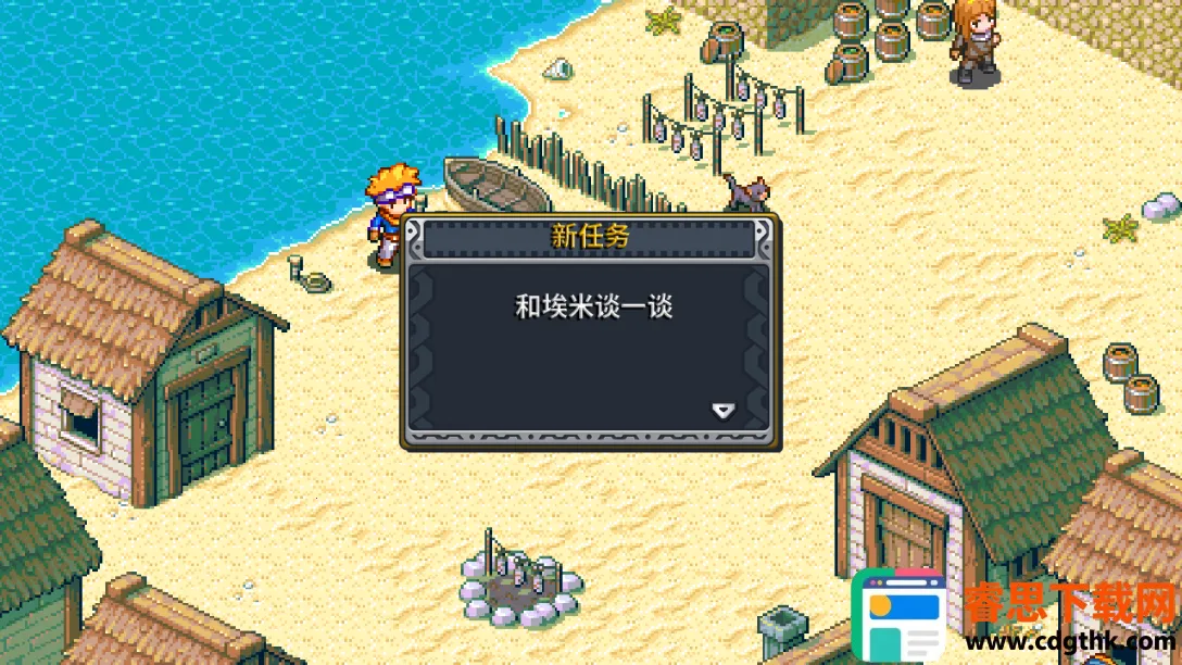 4、正式进入游戏以后,爷爷会交给角色一个任务,那就是去海边修筑围墙,并带上埃米,因此会获得一个新任务;