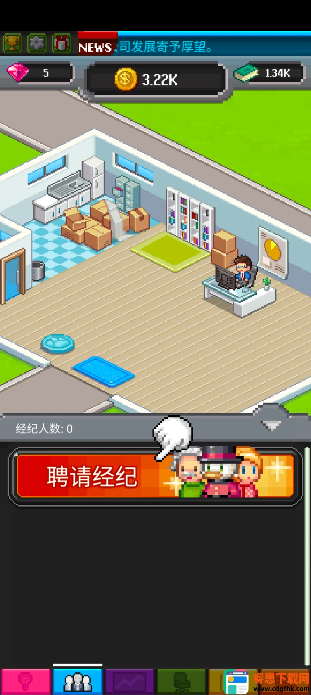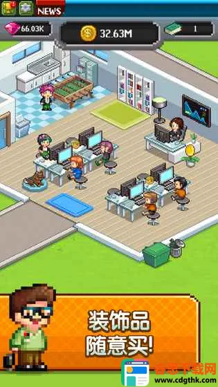 2. 丰富经营玩法:能管理自己的公司,聘用员工,还可改善办公环境,从普通办公室升级到豪华城堡,大量装饰随意买。