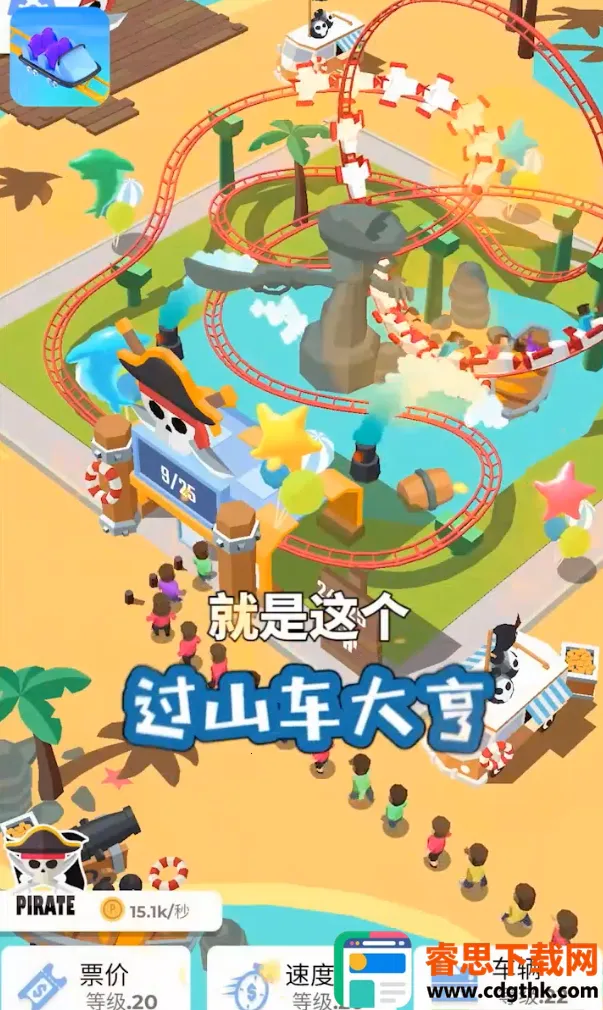 2. 高度自由化设计:能设计多种过山车,如木质、悬挂、钢铁等,还可自由搭配车站外观、车厢类型及轨道,自定义游乐园主题与色彩。
