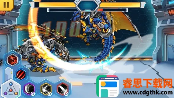 2. 独特的技能系统:技能系统中,不同技能标以不同颜色,存在克制关系。利用好技能属性相互克制,即便战力不及对方也能取胜。例如玩家可优先能量充满的机甲释放技能造成伤害,在回合制对决中掌握技能克制是赢取胜利的关键。