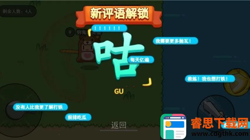 嘿,喜欢沙雕动画的朋友们有福啦!今天给大家介绍一款超好玩的游戏——锤锤大作战,这里面的特效绝对能满足你对沙雕动画的期待!在这个游戏里,你会化身为勇猛战士,在充满挑战的战场击败敌人。靠近敌人就能发动凌厉攻势,危险时还能开启防雨罩自保。游戏特色超多,比如要关注角色攻击状态解锁招式,留意击杀数据找攻击方案,增加角色防御效果减少受伤,提升武器威力增强战斗实力,胜利还有奖励能换更好武器。玩法也很有趣,操控可爱小人攻击对手,提升角色等级增强实力,加强打铁能力获得更强武器。而且游戏还有许多搞笑评语,达成成就就能触发。快来锤锤大作战,体验这充满欢乐与刺激的沙雕动画般游戏竞技吧!