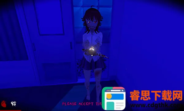 3、进入游戏,玩家会直面病娇学姐,你需要在听病娇讲完话并转身带路后,偷掉她身后的钥匙,拿这把钥匙去打开储藏室的门,把电闸拉下去。