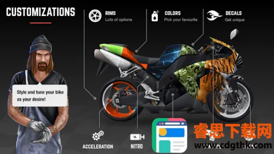 2. 丰富车型选择:精心模仿16种不同摩托车,能挑选并改善性能、更改设计后比赛。