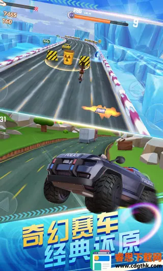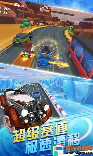 专属战车超酷炫:每个角色都配备专属战车,速度、电量、氮气各不相同,带来独特跑酷体验。