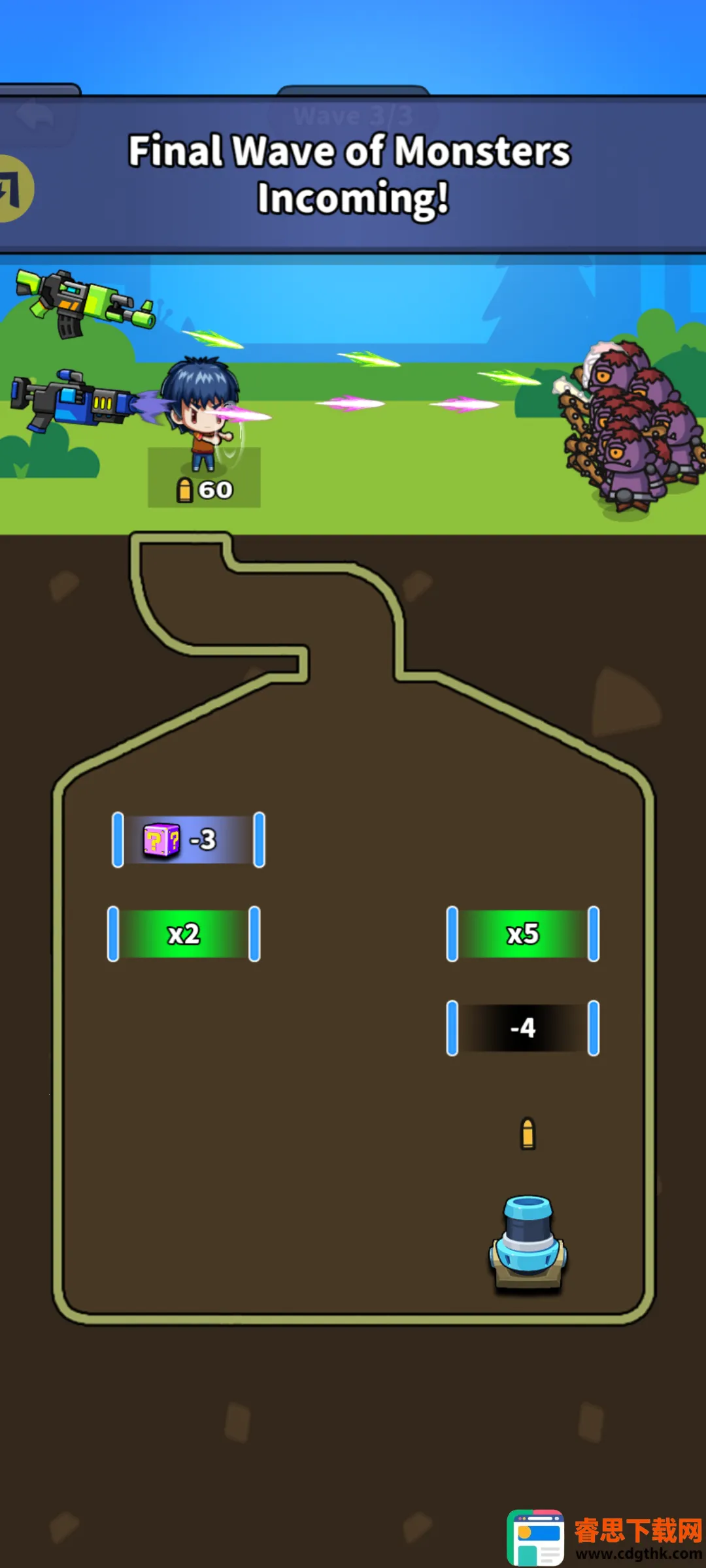 3. 操作便捷:滑动即可控制炮塔射击摧毁障碍。