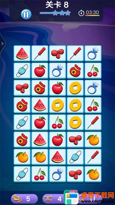 每个关卡有倒计时,需在规定时间内消除所有图案才能闯关成功。