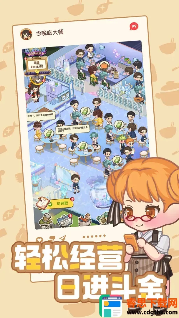 2. 能收集全部菜谱,完成美食图鉴吸引特殊顾客,解锁专属故事,收集限定服装与饰品打扮自己和员工。