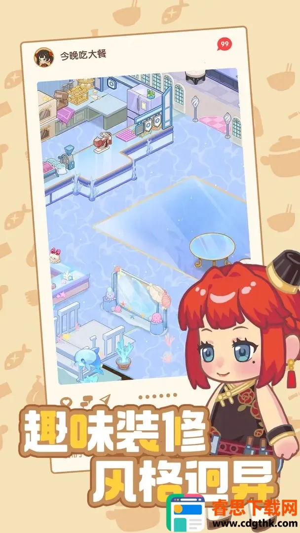 1. 拥有海量Q版家具与装饰,支持室内室外自由摆放,可解锁不同主题区域,尽情混搭打造个性化餐厅。