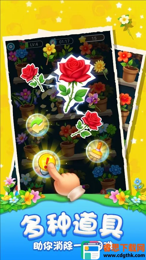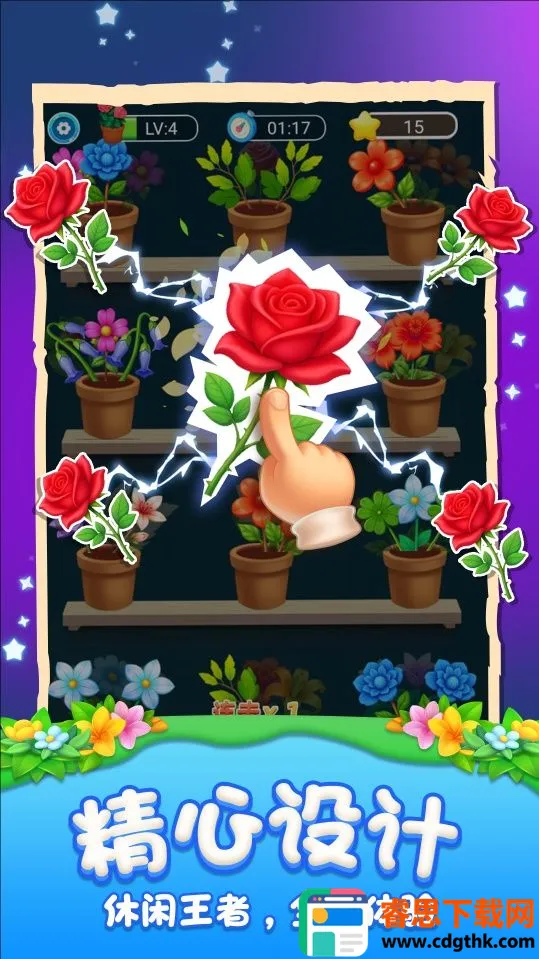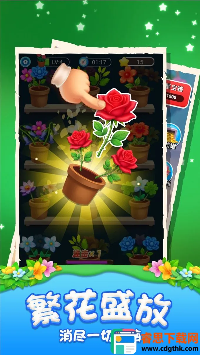 4. 满屏五颜六色花朵,结合插花元素,玩法新颖,界面绚丽,给你愉悦体验。