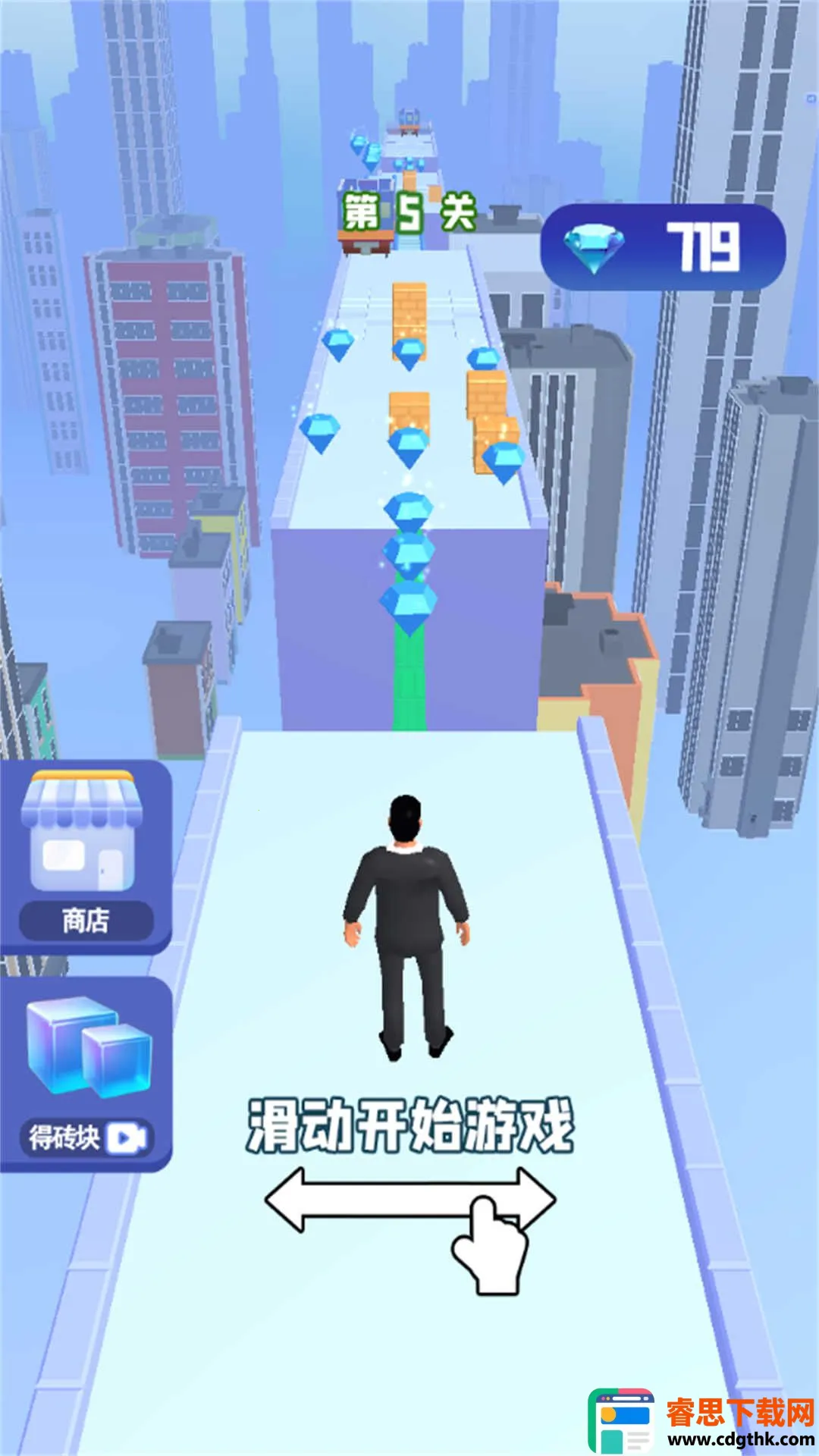 2. 结合跑酷与收集元素,在跑酷途中收集砖块,玩法新颖有趣。