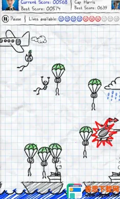 2. 丰富干扰元素:要引导跳伞员安全登船,需小心直升机、饥饿鲨鱼、雷云以及偶尔出现的UFO等干扰。