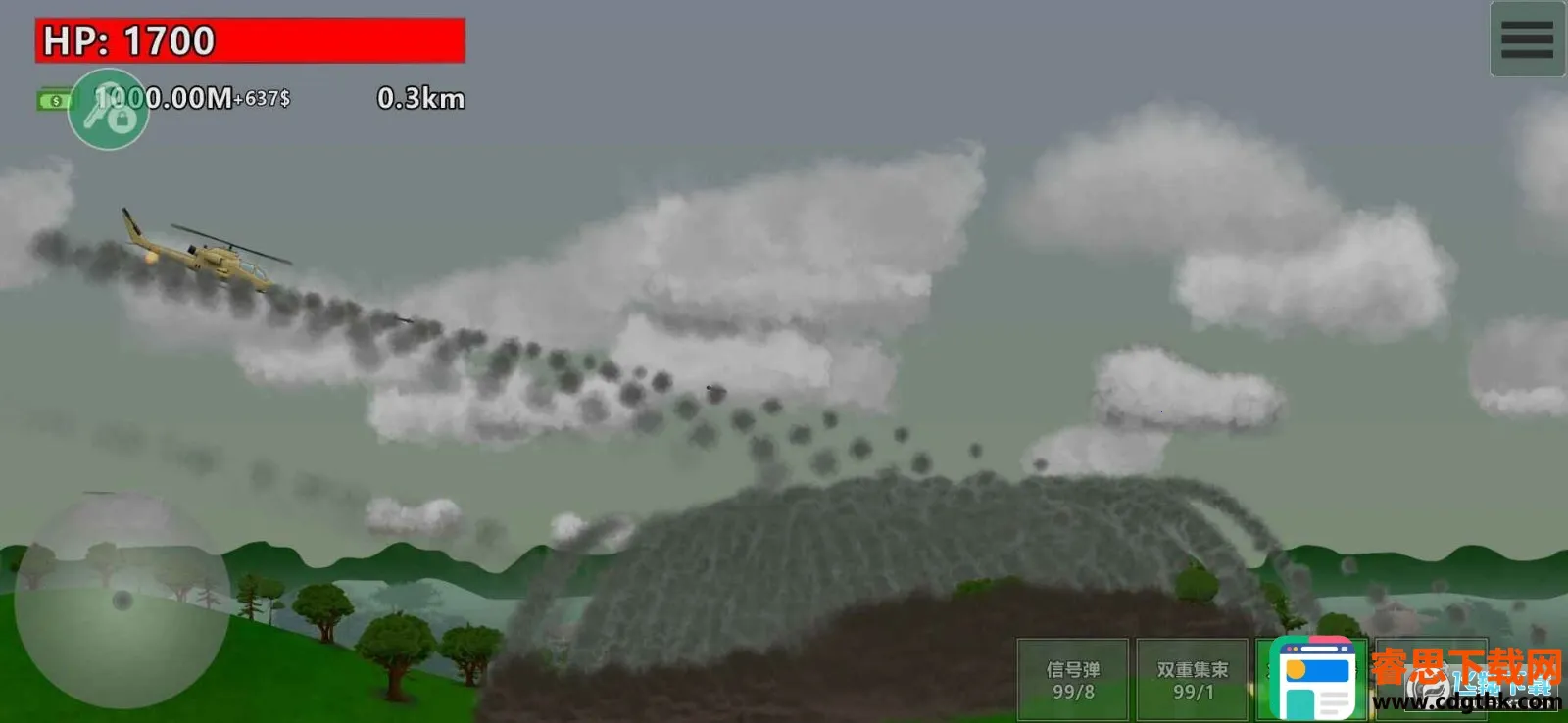 2. 多样地图场景:地图场景十分多样化,玩家可以自由探索,驾驶坦克或者直升机在横版地图中对敌方目标建筑物体等进行毁灭性轰炸或摧毁。
