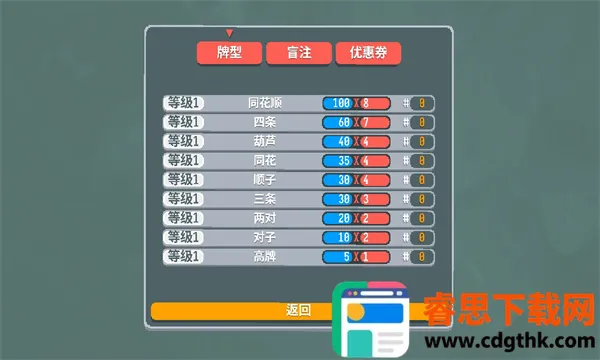 独特能力:每张牌自带专属技能,策略深度层层递进。玩家需巧妙结合小丑牌属性与手中牌,打出强力配合以击败对手。例如,某些小丑牌能让特定花色牌计分倍率提升,或在特定牌型出现时给予高额筹码奖励。