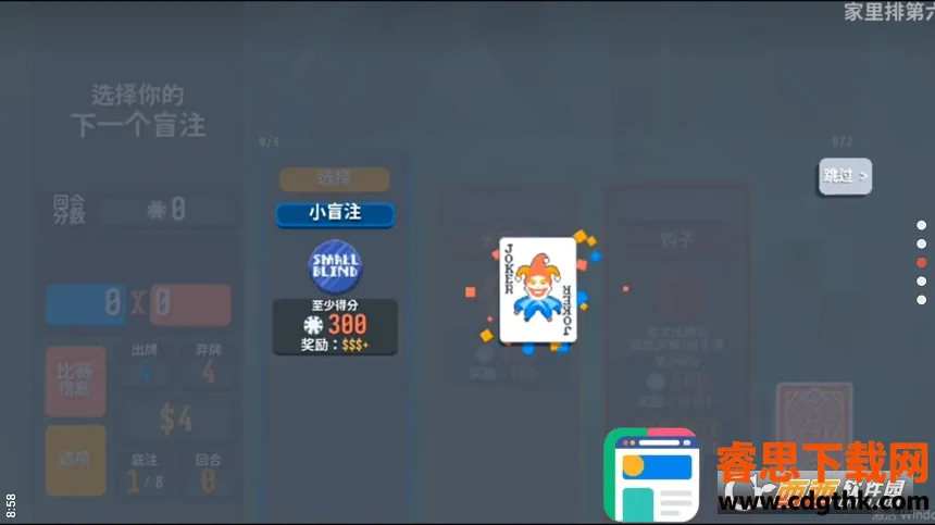 小丑牌Balatro是一款超有趣的回合制卡牌对决游戏。它玩法策略性十足,玩家能用扑克牌和小丑牌组独特套牌,每张小丑牌都有特别效果,靠连击和策略拿高分。游戏模式丰富,有战役、挑战等。其功能强大,能满足你对卡牌游戏的策略追求。不管是想享受烧脑的策略对抗,还是体验丰富多样的游戏模式,它都能实现。它能解决你渴望在卡牌游戏中展现策略智慧的需求,带来无尽的游戏乐趣。设置中文很简单,主界面点击右下角文本图标,找到简体中文点击切换就行。玩的时候,打开游戏点开始,新玩家有新手教程,目标是赚筹码击败对手盲注。点击左侧比赛信息可查看牌型得分,通过棋牌牌拿新手牌但有次数限制。胜利目标是在出牌次数用完前赚300筹码赢回合,反之则游戏失败。快来试试这款精彩的游戏吧!