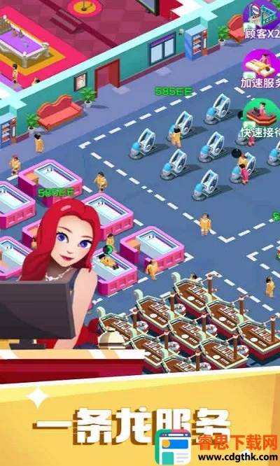 3. 多样经营玩法:不仅要修建各类洗浴服务娱乐区域、升级设施,还要管理前台、发布推广活动,全方位经营洗浴中心。