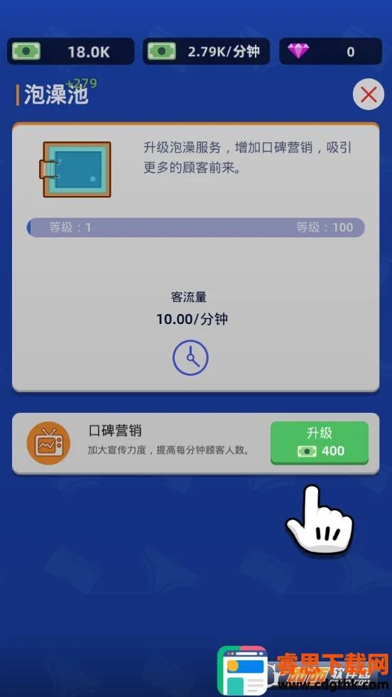 1. 轻松发展壮大:从小型洗浴中心起步,通过做出关键决策,逐步扩张,最终打造出世界最强的洗浴中心。