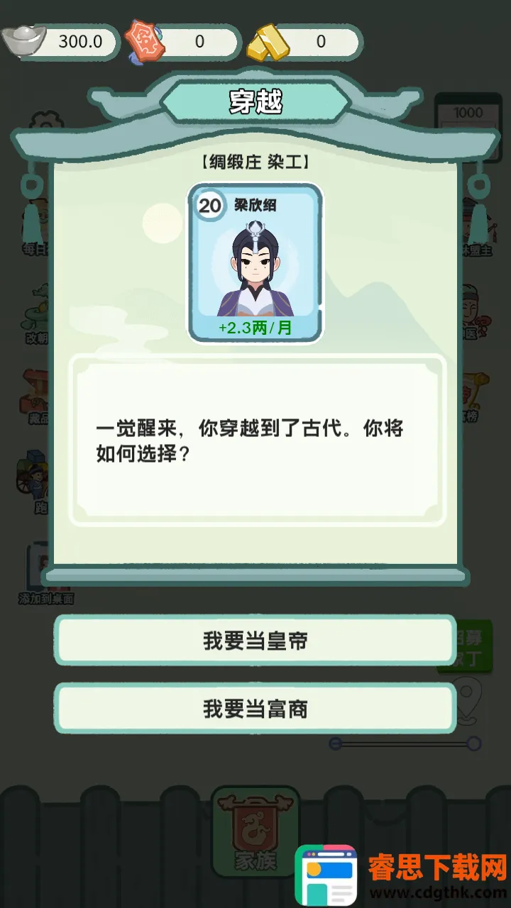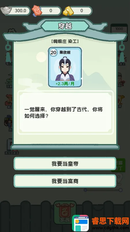 这款穿越题材游戏超有趣!以时空穿越为背景,将现代科技与古代文化巧妙融合。玩家穿越至古代家族,面临诸多因文化碰撞引发的蝴蝶效应。在这里,决策影响家族命运,从赈灾到生产,每个选择都至关重要。科技树分岔、姻缘簿系统等特色玩法,充满未知与挑战。还有多元结局设定,每次游戏体验都新鲜。其古风画面、丰富剧情、简单操作,让人沉浸其中,书写独特古代传奇,值得一玩!