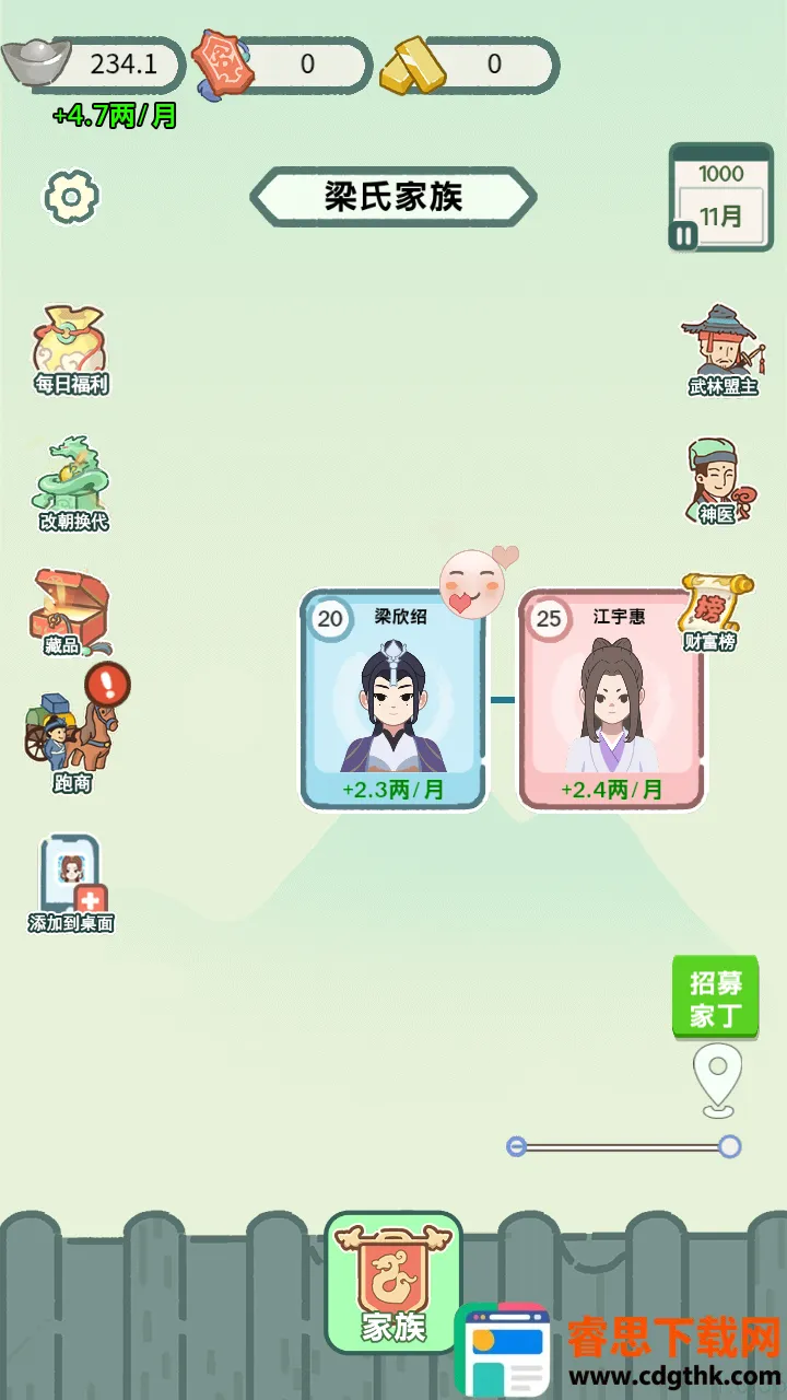 2. 能与各种NPC建立关系,结交权贵和江湖侠客,拓展人脉,为家族发展助力。