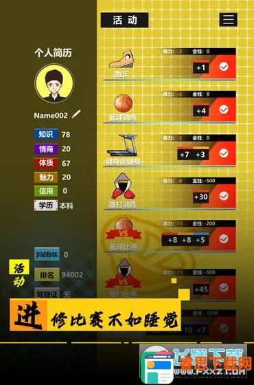 4、角色属性界面提供分配属性点的机会,比如智商、情商、力量、魅力、机敏、耐力和粉丝,合理配置助力职业发展。