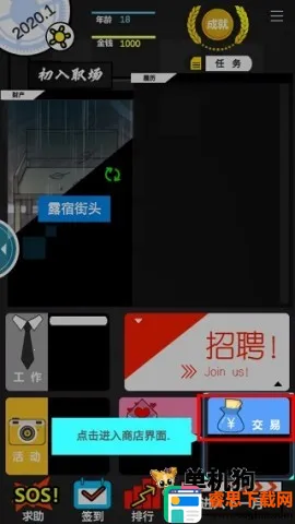 2、点击“交易”进入商店,租赁一套房子,开始在这个城市打拼。